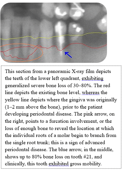 - In advanced periodontitis, there is severe bone loss around the tooth.