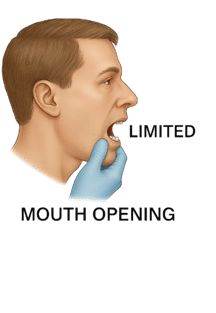 Inability to access posterior teeth (especially maxillary or mandibular molars).